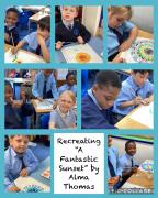 We learned all about Alma Thomas and the "impasto" effect that she used. We studied some of her paintings, made our own version of "A Fantastic Sunset" and then made our own painting using this as our inspiration. Finally we used paper mosaic pieces to create the same picture.
