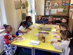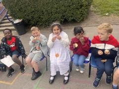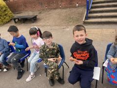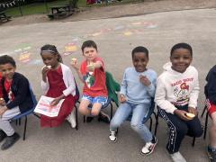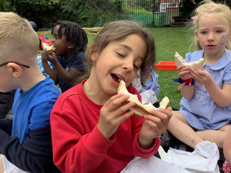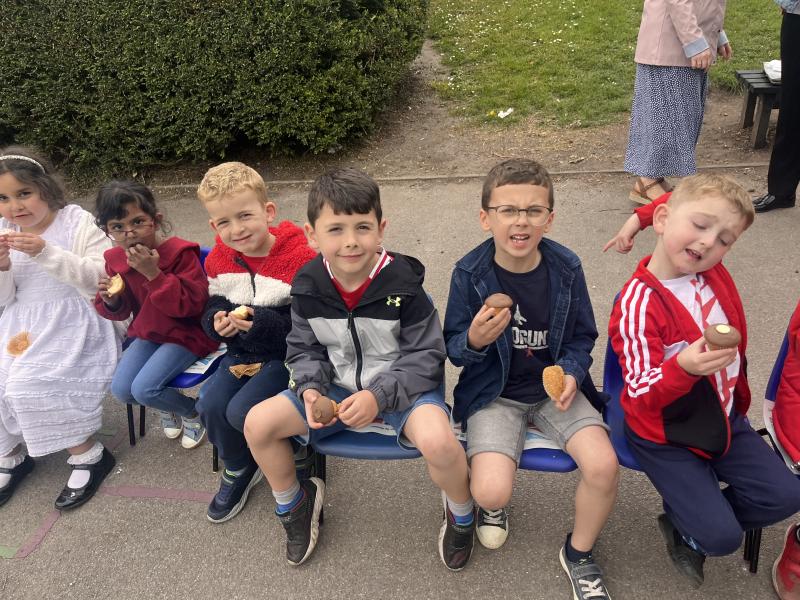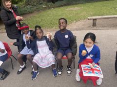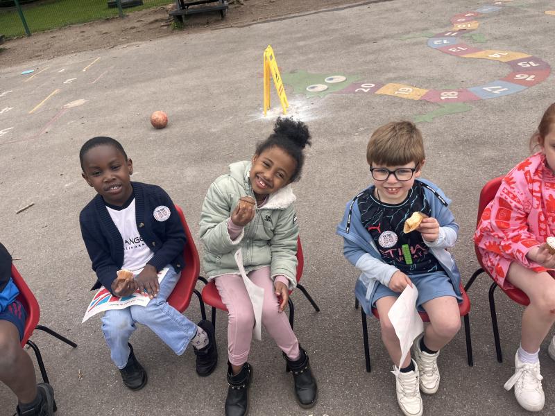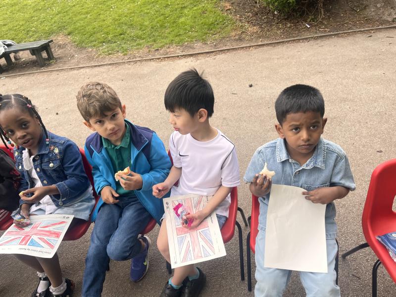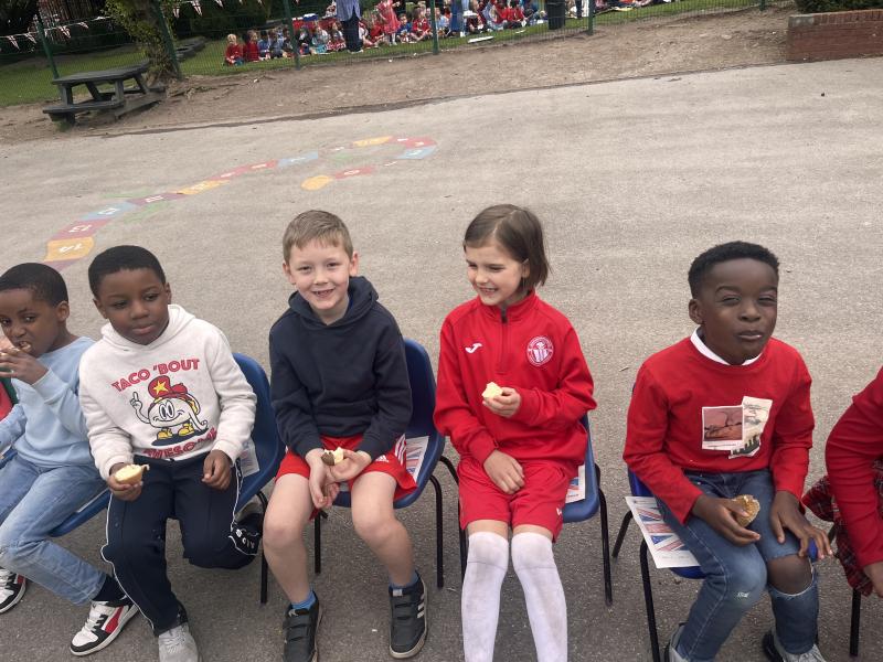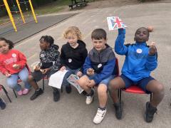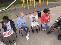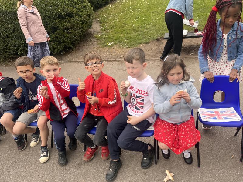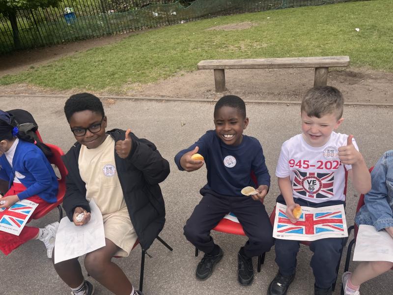 Children took part in a special VE Day celebration by joining a live assembly with schools from across the country. After learning about the importance of the day, they got creative by making colourful flags and preparing tasty jam sandwiches. To mark the occasion, the whole school enjoyed a fun outdoor party, just like people did 80 years ago. Everyone joined in singing, and the Year 2 children gave a fantastic performance, even teaching the rest of the school some traditional 1940s dance moves. It was a joyful and memorable way to honour this very special day.