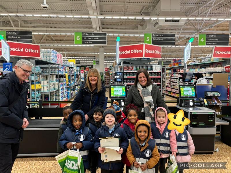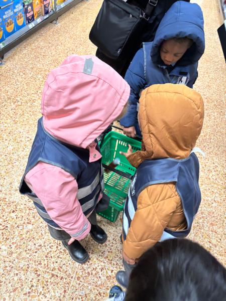The children in nursery have been learning about the story Goldilocks and the Three Bears. On Wednesday and Thursday we went to our local supermarket to collect ingredients to make some tasty porridge just like the three bears love to eat. We took our shopping lists and collected all the items. We all took turns to tick off the items on the list. We carefully put each item in the shopping basket. We enjoyed putting the items on the conveyor belt. We all had important jobs to do. We worked together to pack our bag and we paid the checkout lady and she gave us our change. She said we were fantastic boys and girls and we could come back to Asda whenever we wanted. We met a shop assistant called Pauline who even let us try on her headset. We can't wait to make our tasty porridge. We are hoping it will be just right.
