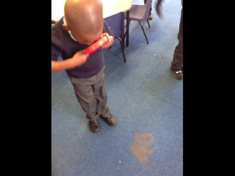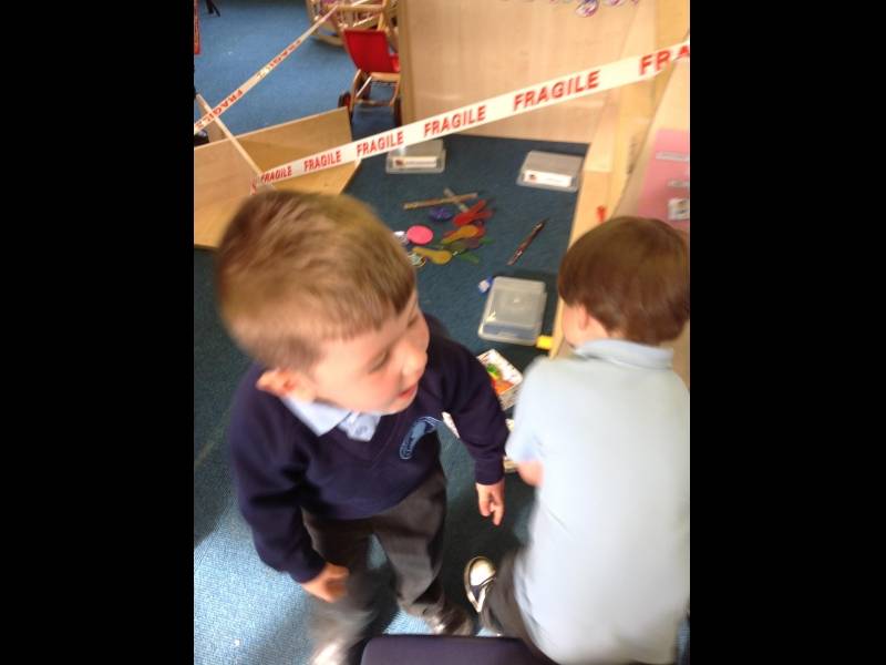 We went into the hall and called the police. They said they were very busy at the moment but they would try and come and see us. They told us to go back to class and collect as much evidence as we could. The children had lots of fun collecting the clues and recording the evidence.