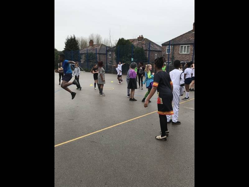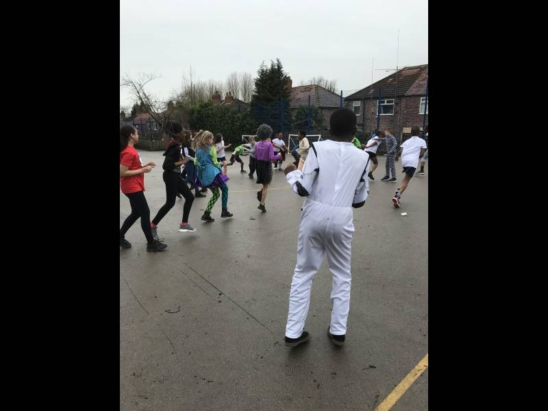 We have been joined by some characters from books in our P.E. lesson today. Who can you spot?