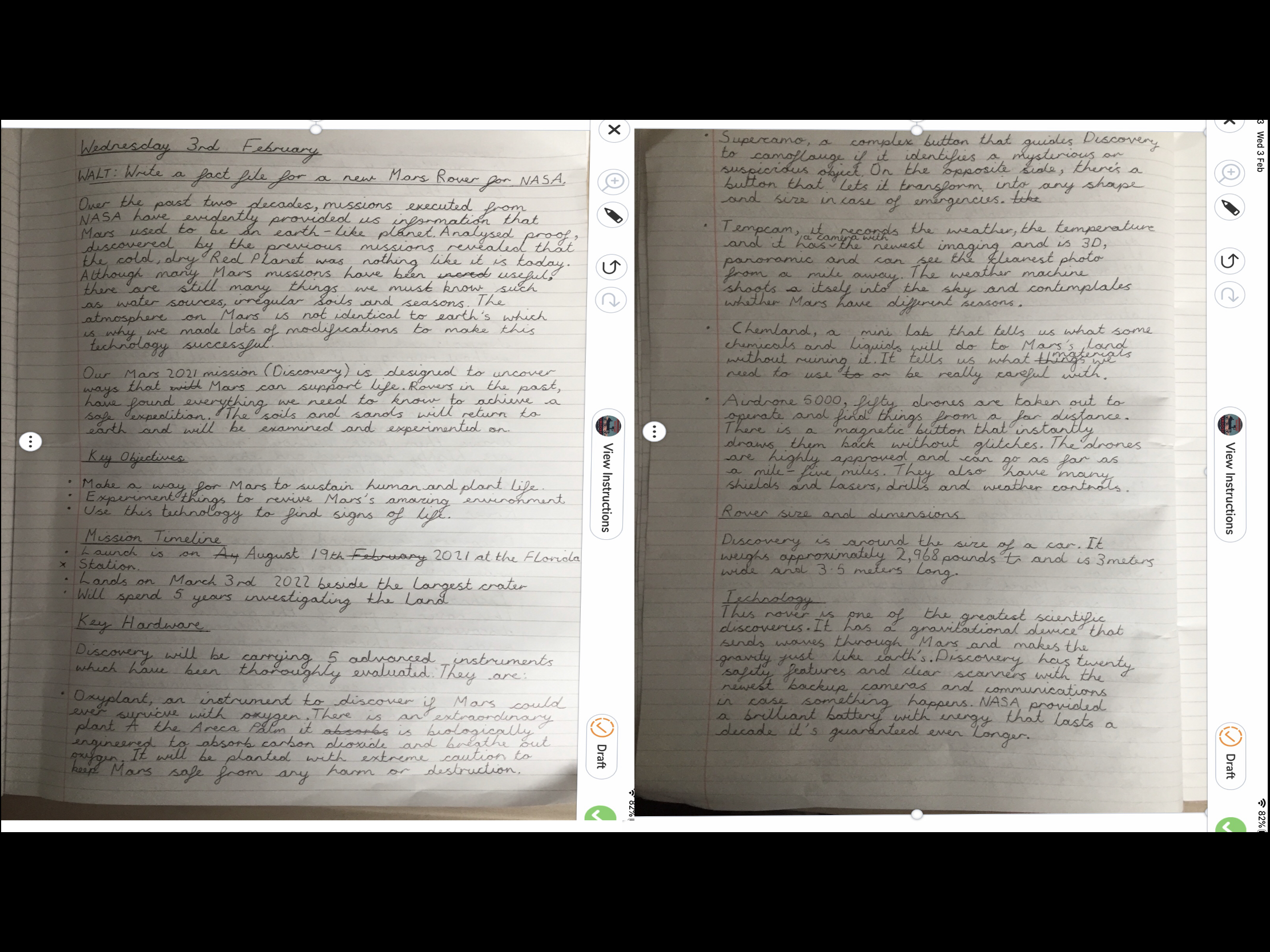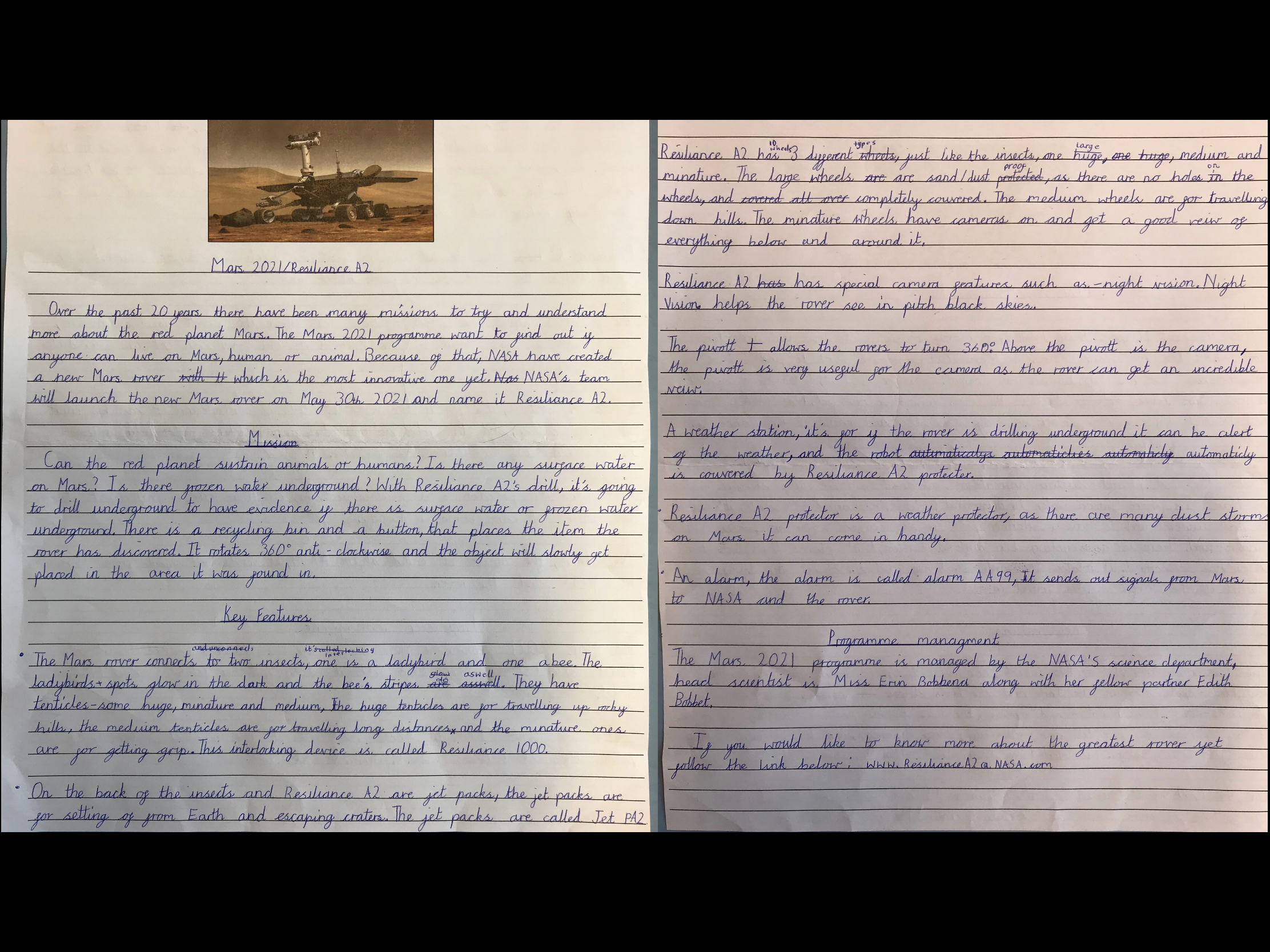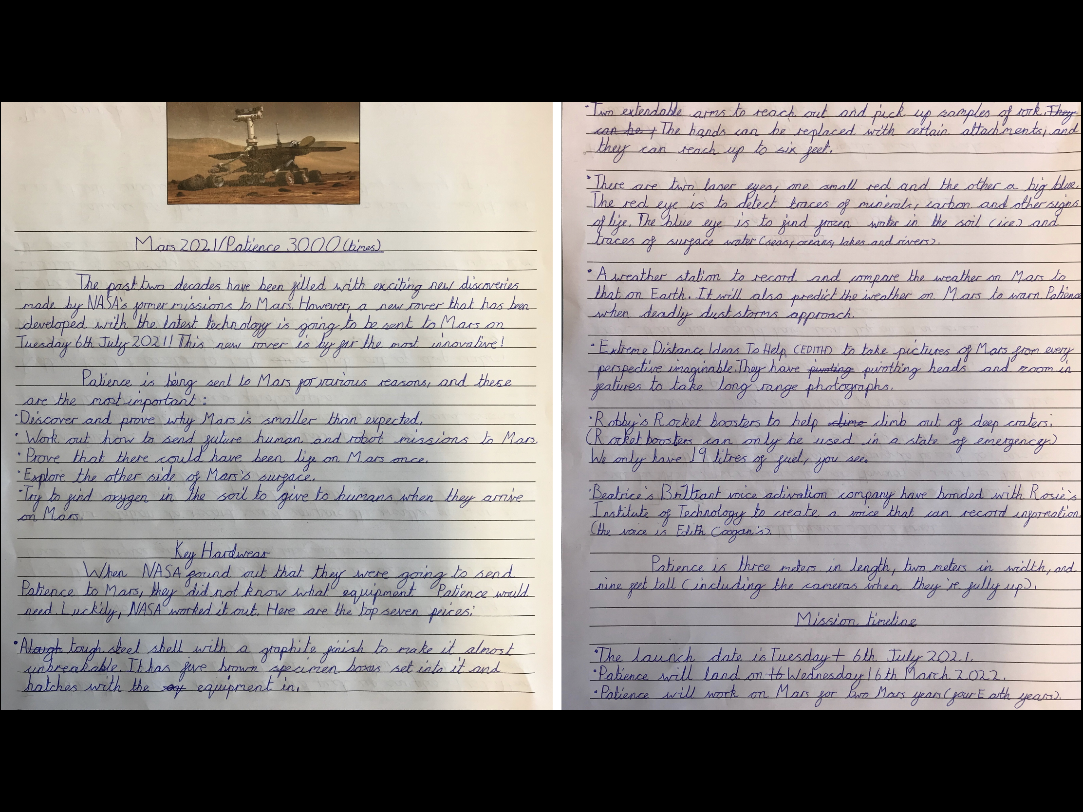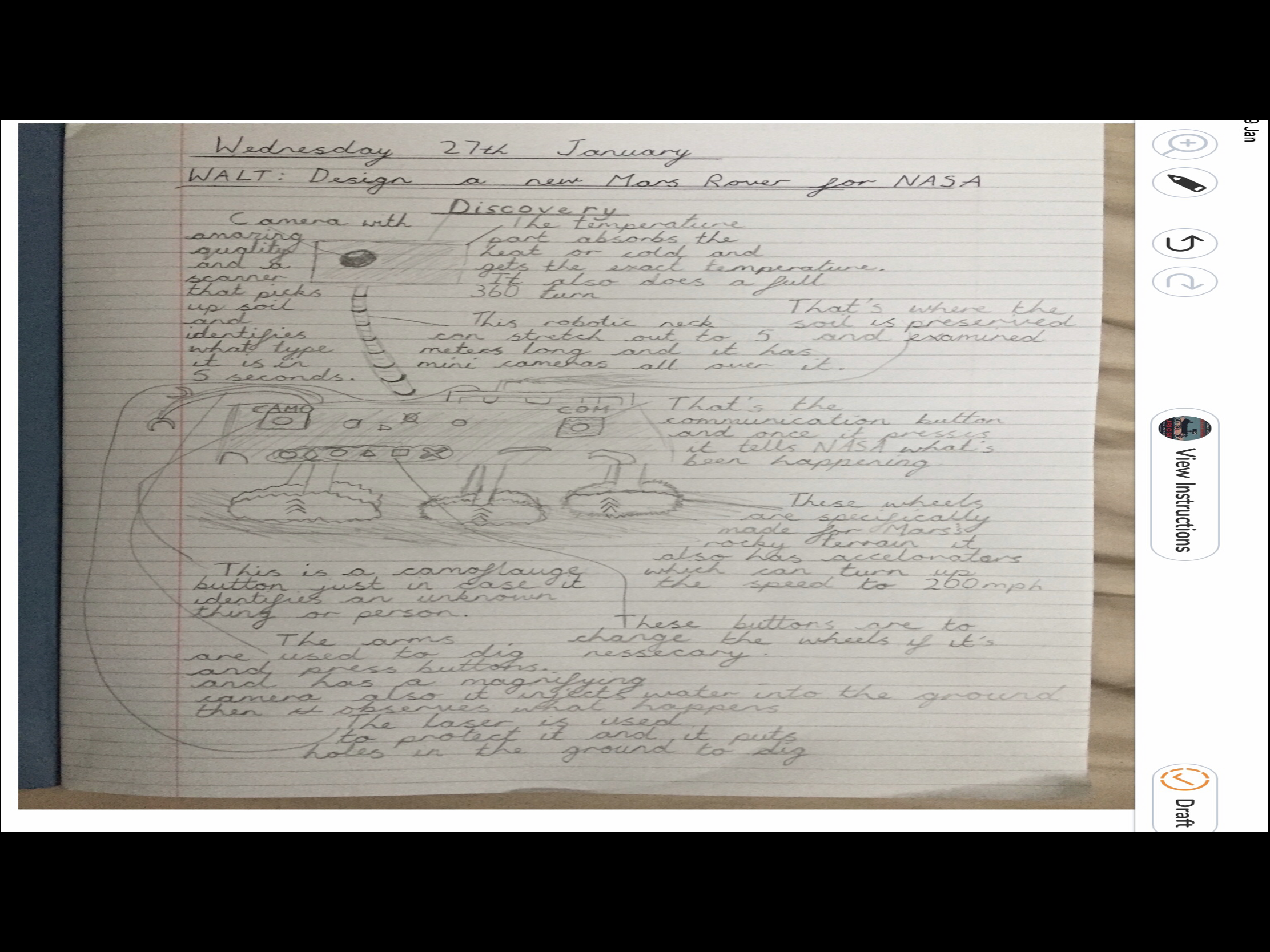 To celebrate NASA's Perseverance Rover Mission to Mars (February 2021), Y5C home and school learners were inspired to design new Mars Rovers. We also read, "Curiosity - The Story of a Mars Rover" by Markus Motum to help us understand the process of designing, testing and launching the "Curiosity" Mars Rover. These innovative designs were then used to write our own fact files, just like NASA Press REleases.