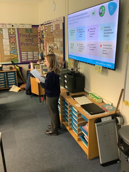 This afternoon, 5B had a fantastic time with Francis from The University of Manchester who came to do a tester lesson with us. We conducted our own research from secondary sources and presented our findings about which animal our group through was the most important.